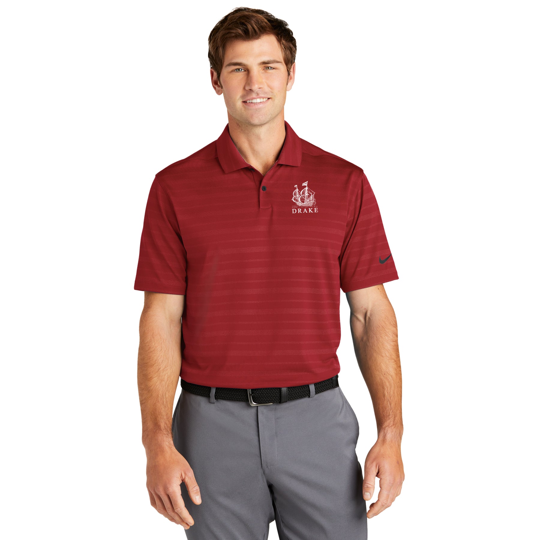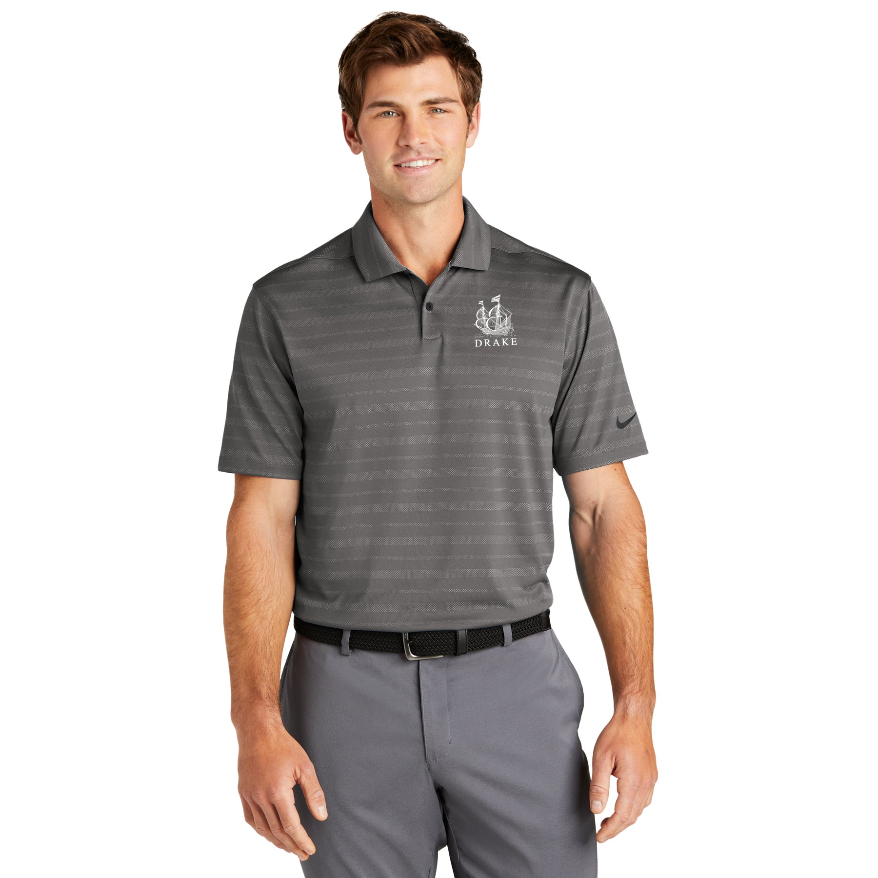 An engineered block print makes this polo stand out on the street or in the office. Designed for everyday wearability, it keeps you in your comfort zone with Dri-FIT moisture management technology. Features a self-fabric collar and two-button placket. Rolled-forward shoulder seams, open hem sleeves and open hem. A contrast heat transfer Swoosh logo is on the left sleeve. Made of 5.3-ounce, 87/13 polyester/spandex Dri-FIT fabric.