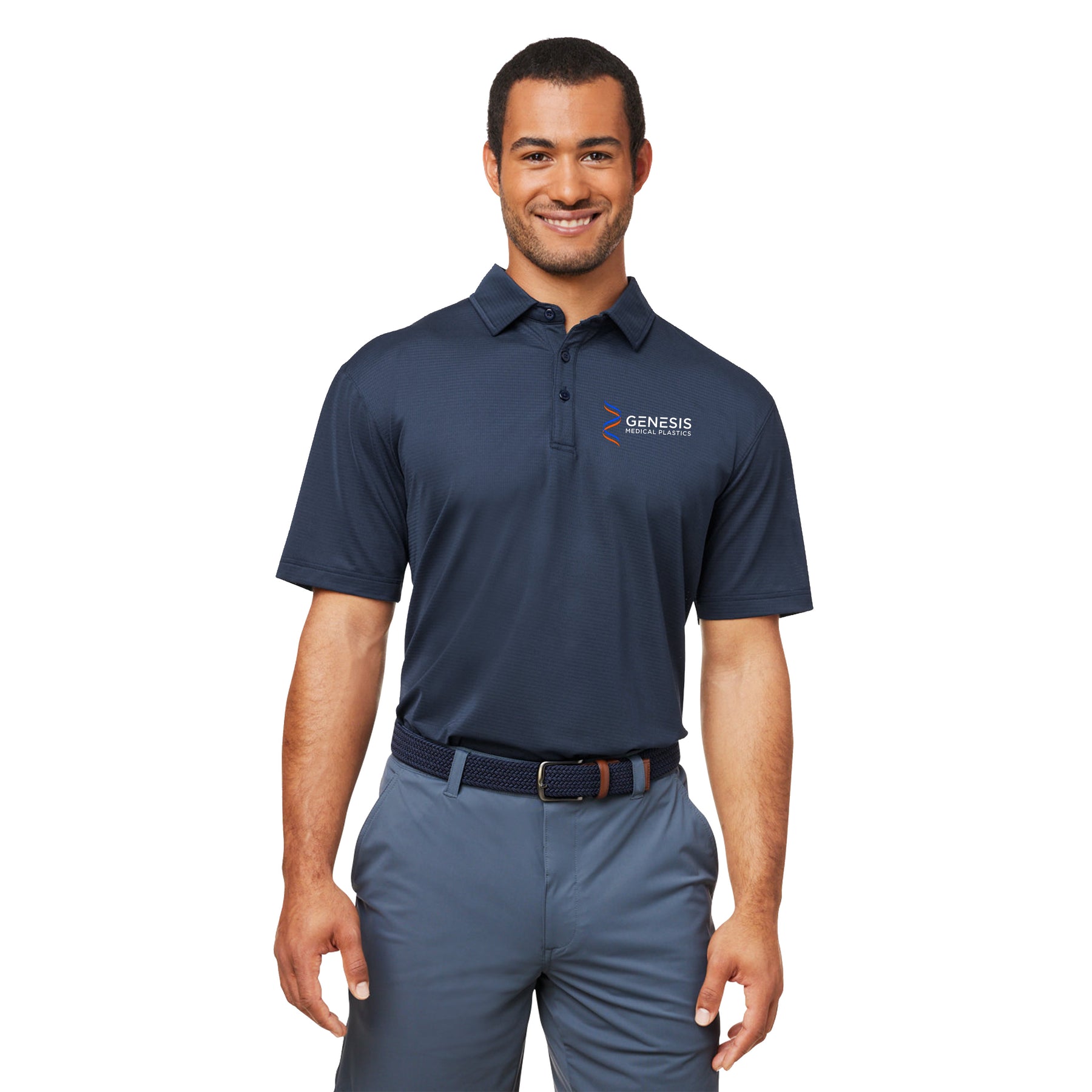 Designed for the ultimate in performance, this polo has a soft drape and an understated vertical mesh texture.