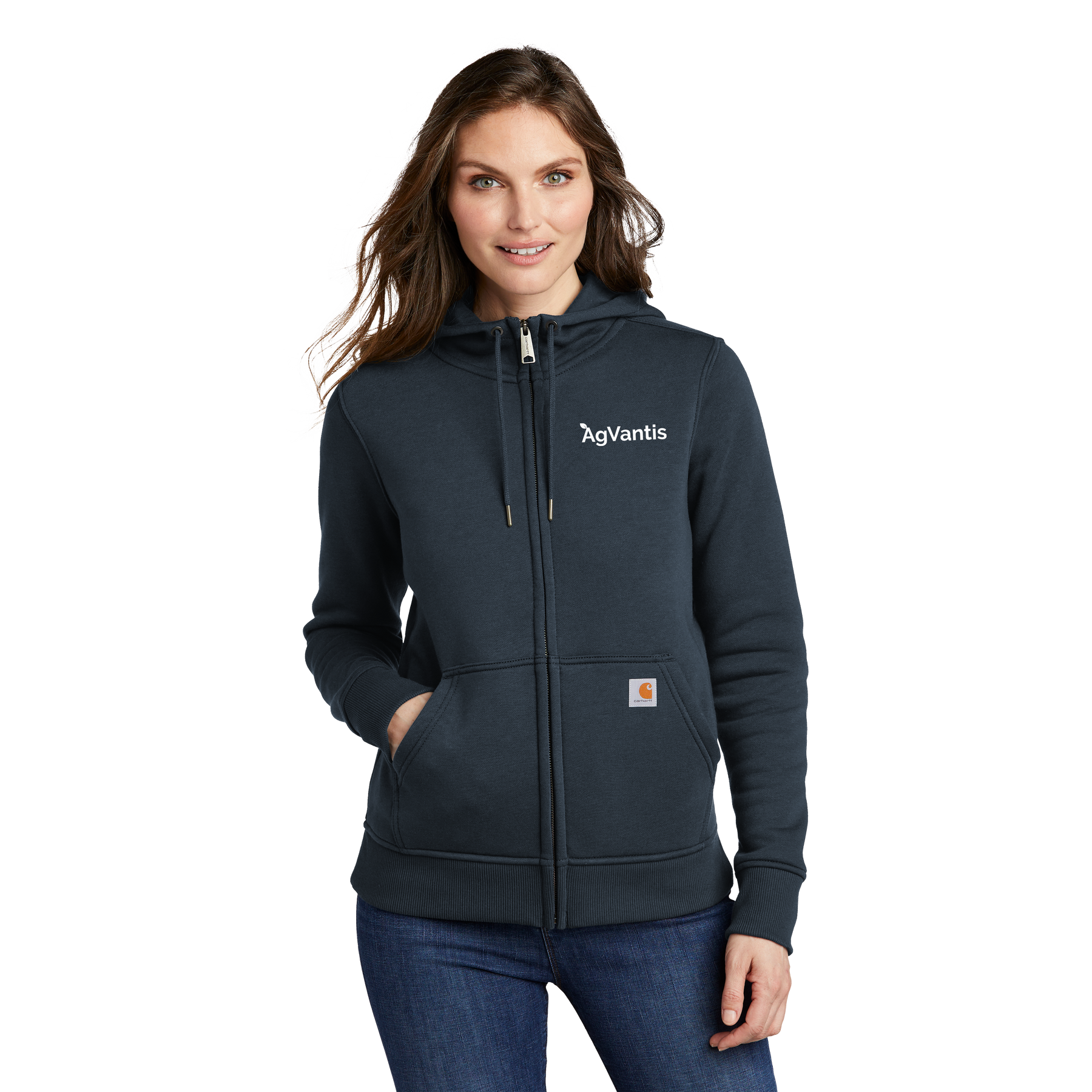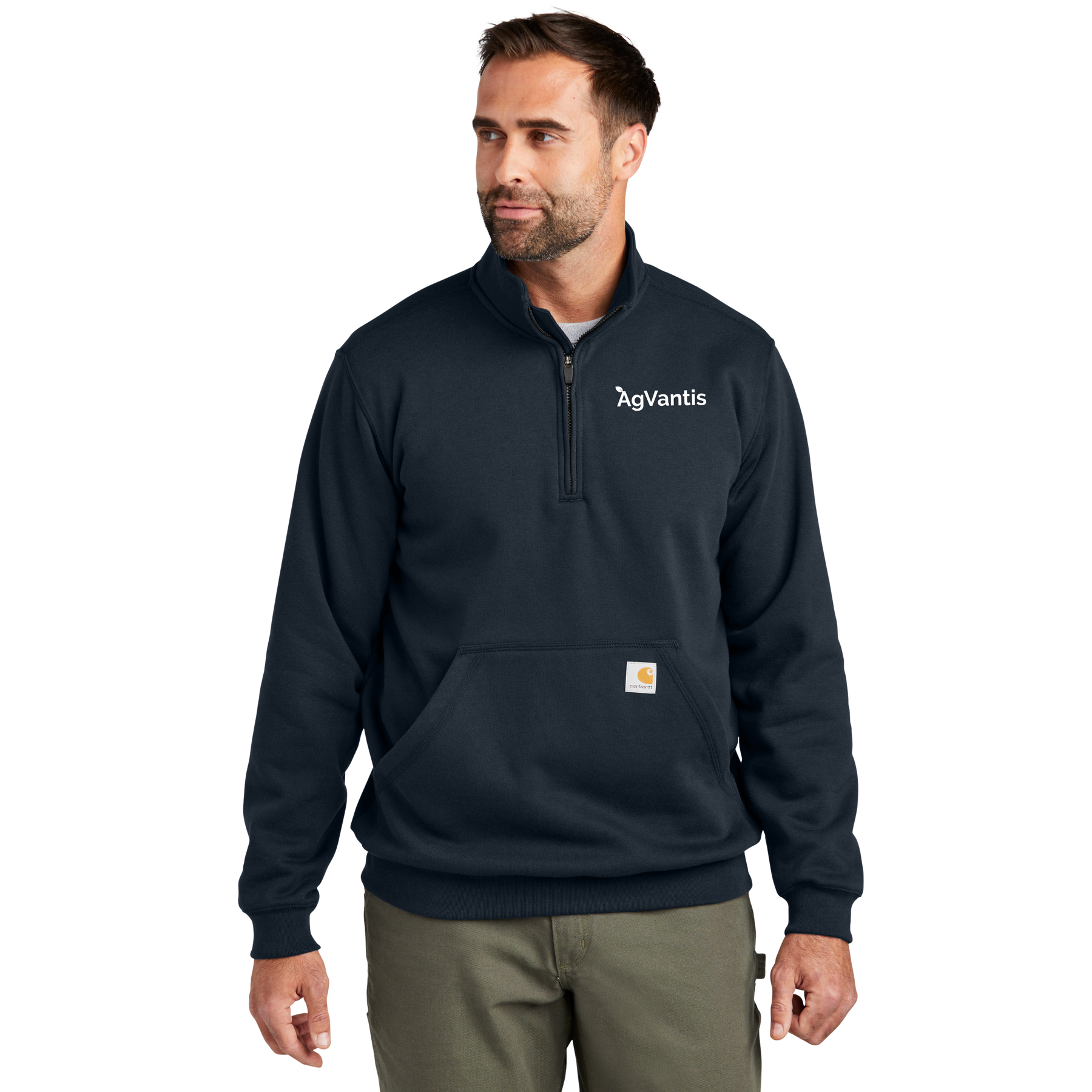 Carhartt label sewn on lower left front
