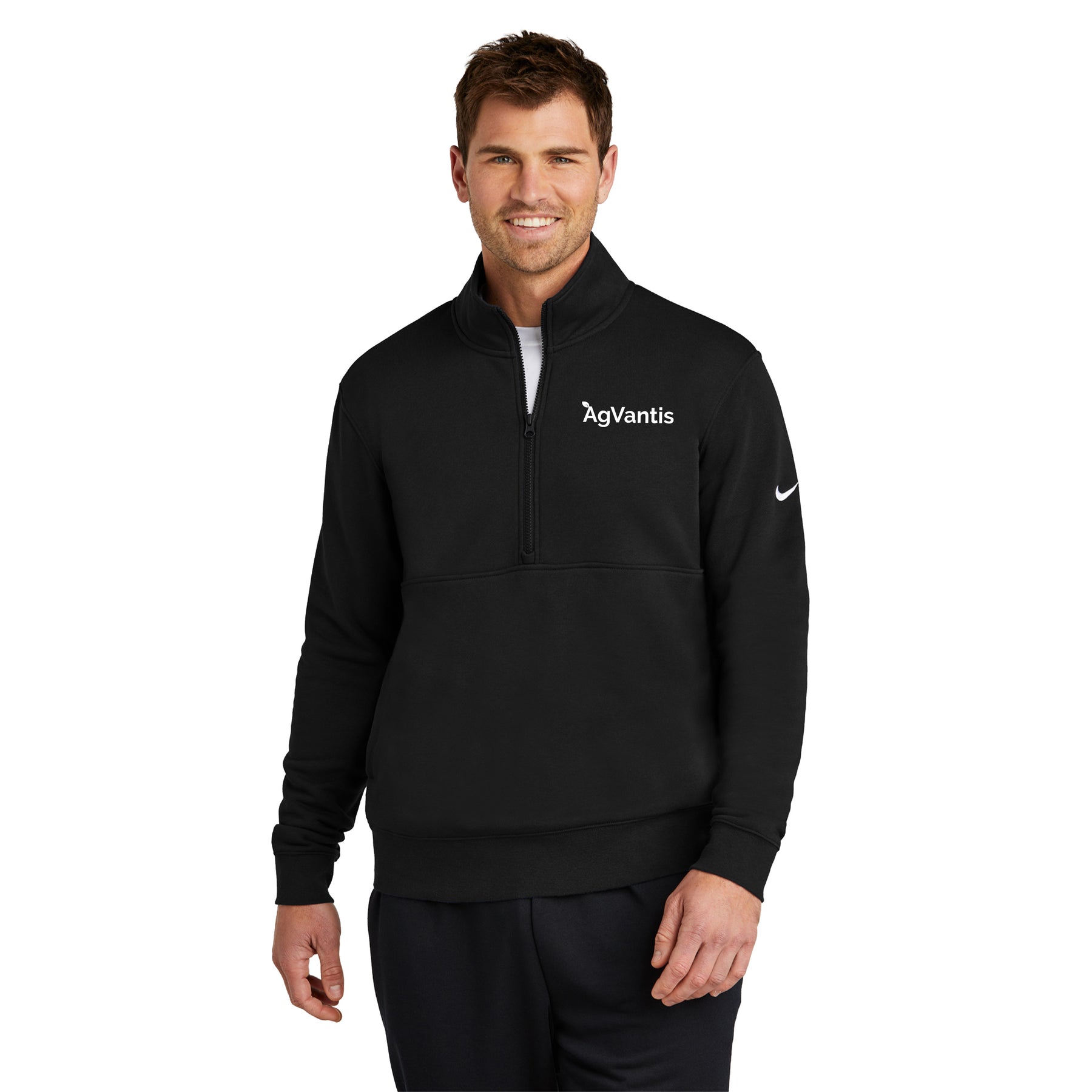 Built with versatility in mind, this brushed-back 1/2-zip has an elevated look which makes it perfect for work or play. Design details include a zip-through collar with dyed-to-match zipper. Front pouch pocket. Rib knit cuffs and hem. A contrast Swoosh logo is embroidered on left sleeve. Made of 8.3-ounce, 80/20 cotton/polyester.