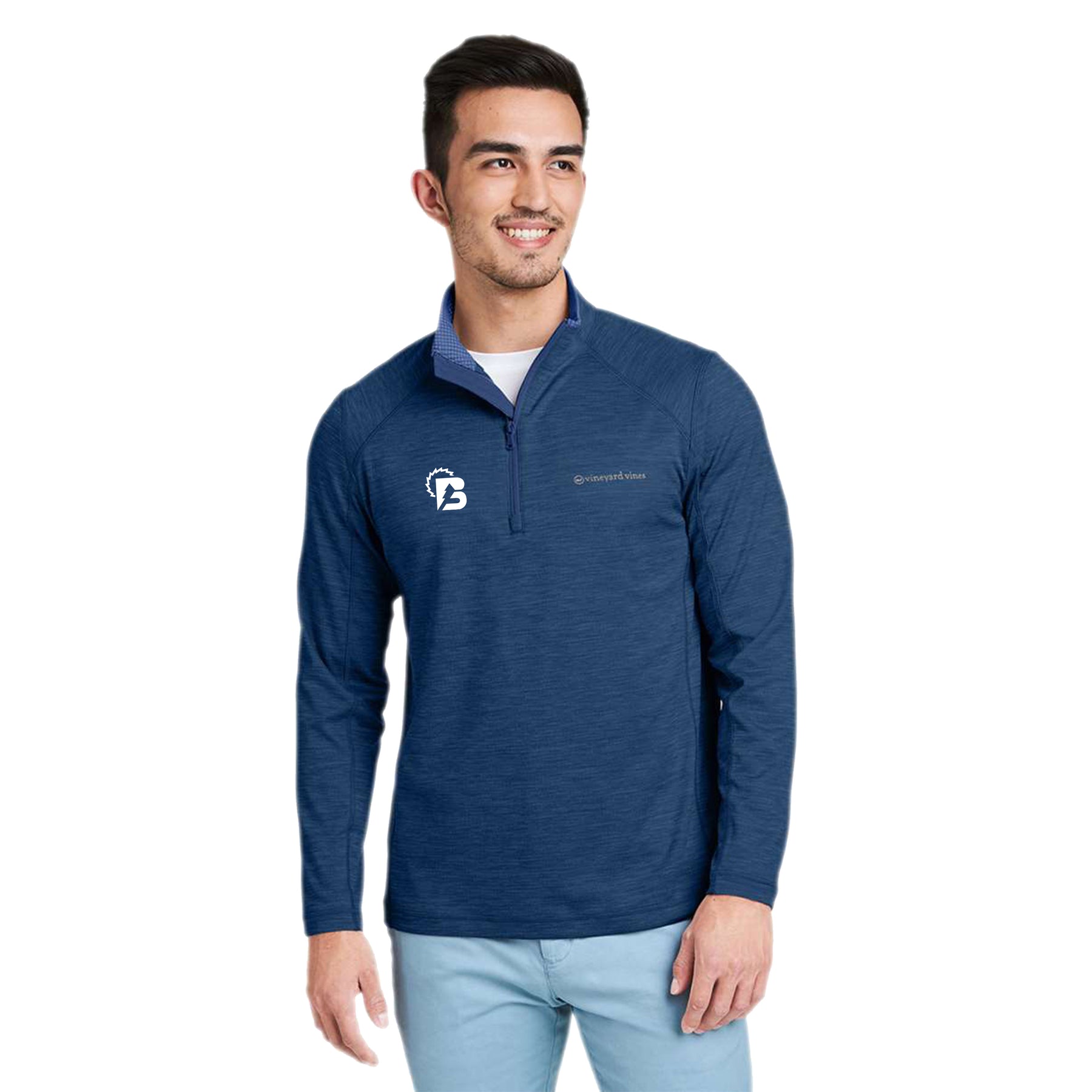 Vineyard Vines logo box label on left-chest and back collar
