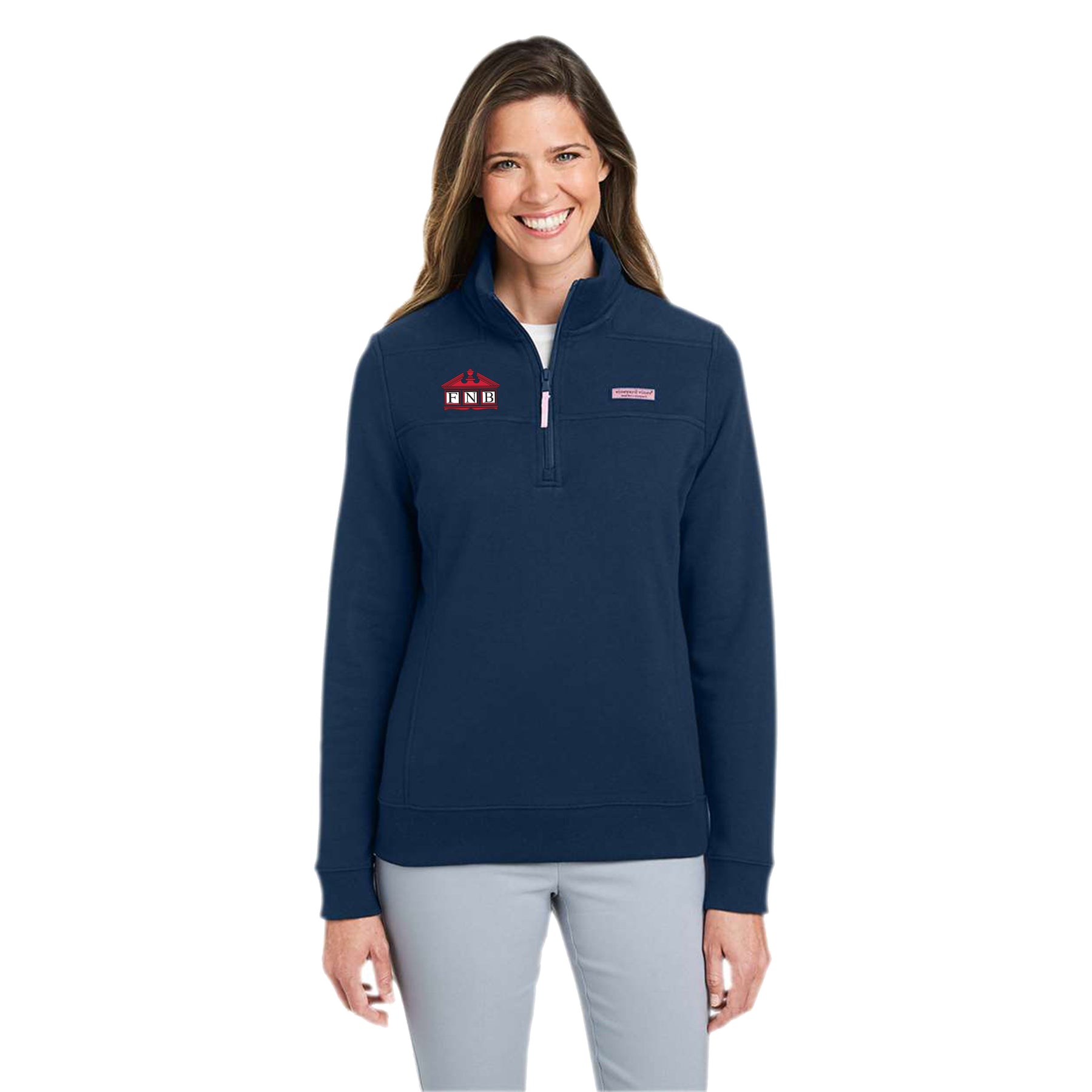 Vineyard Vines logo box label on left-chest and back collar