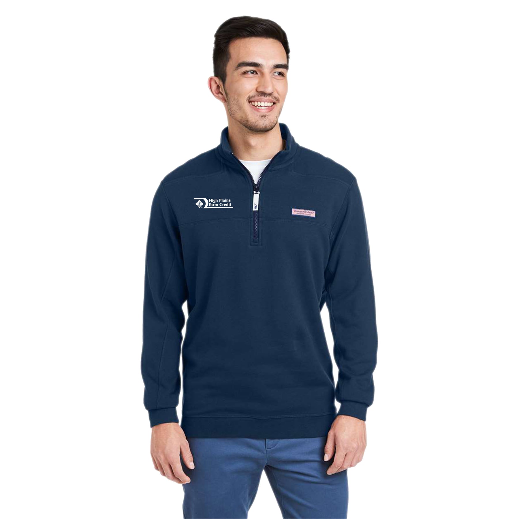 Vineyard Vines logo box label on left-chest and back collar