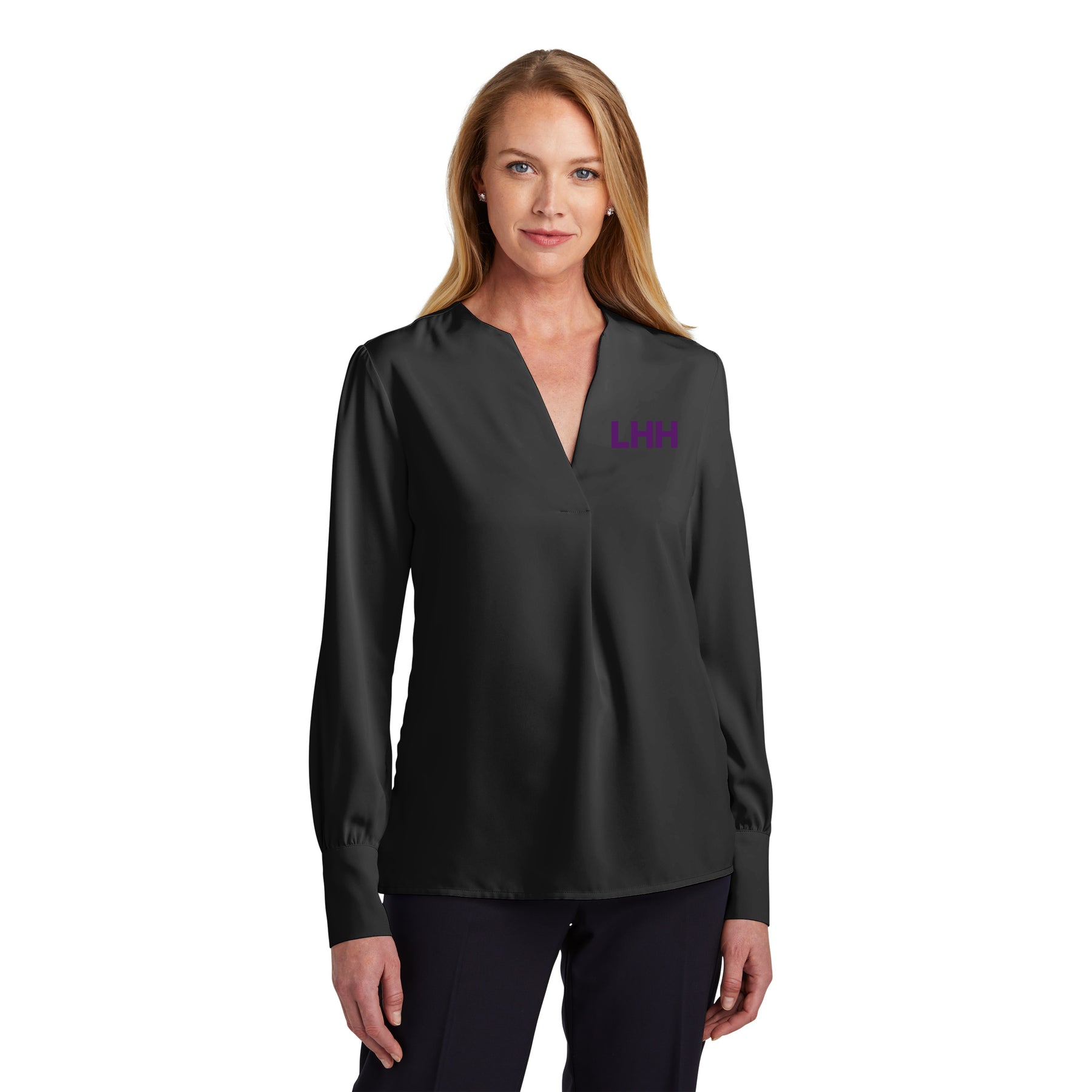 The soft satin fabric of this versatile blouse has a subtle sheen, lending an elegant look to any outfit. Designed for an easy fit to keep you feeling confident and comfortable.