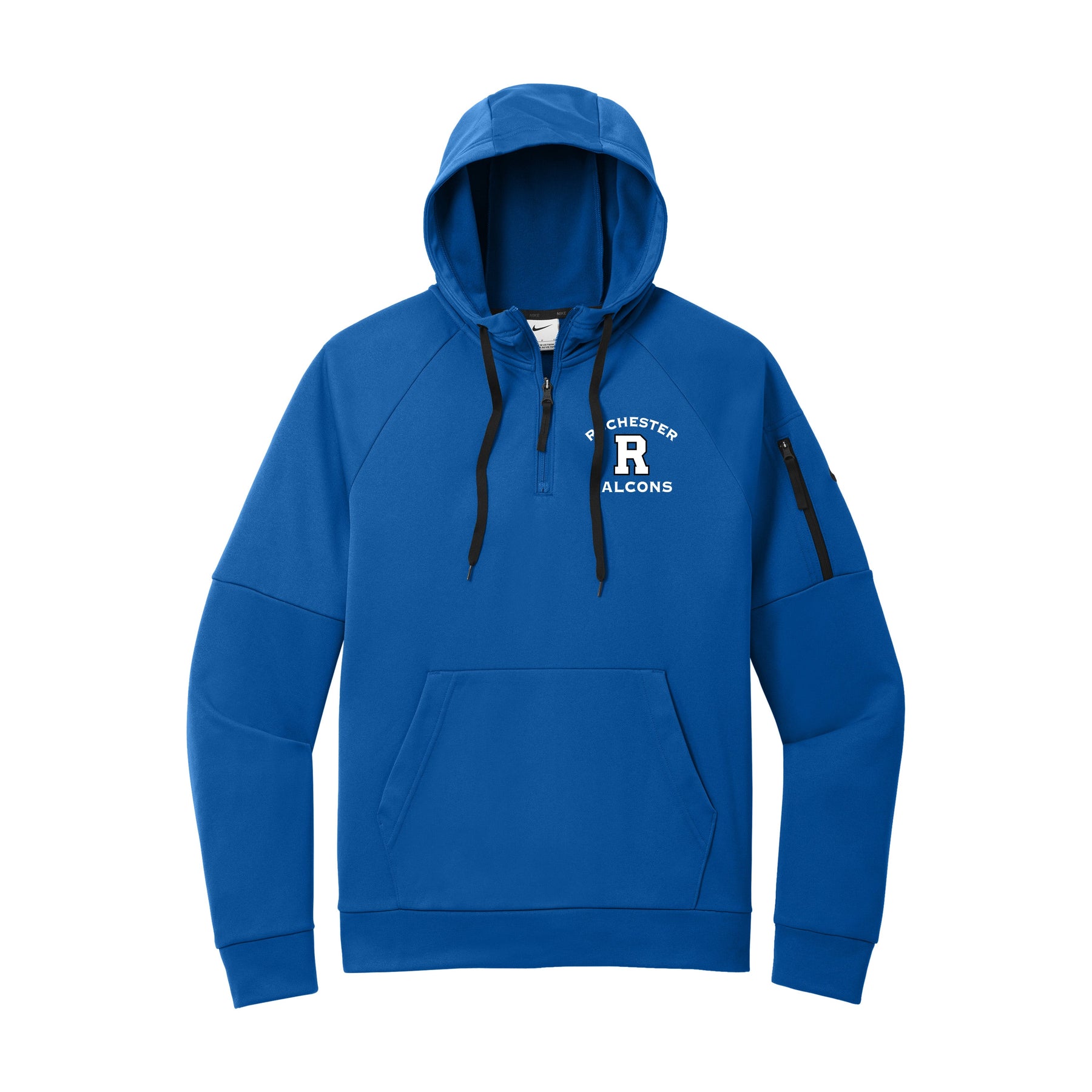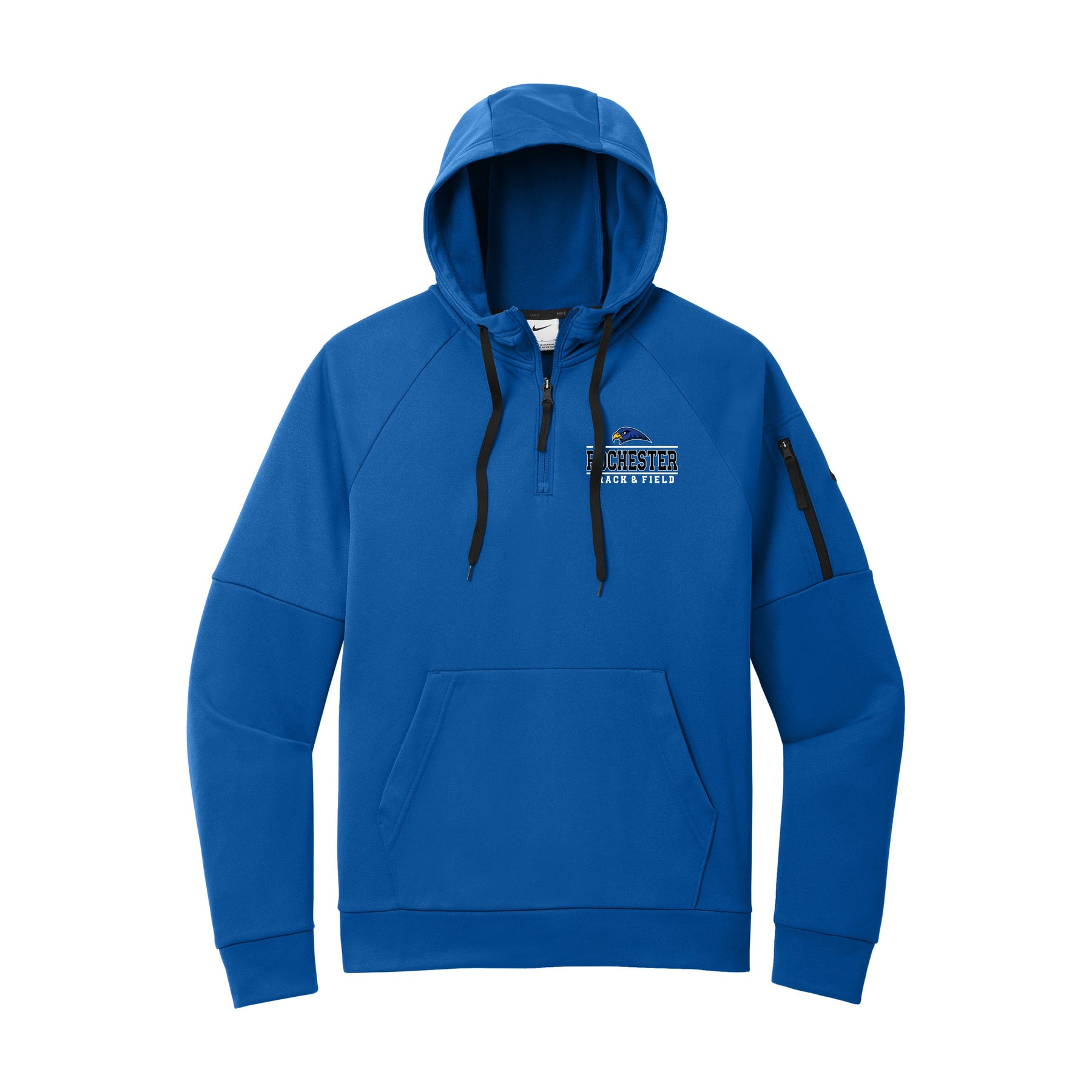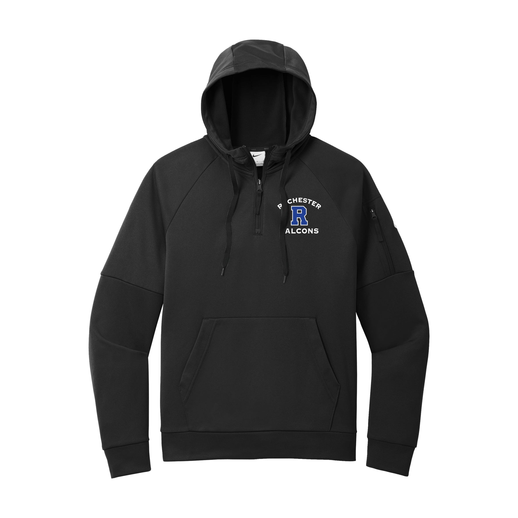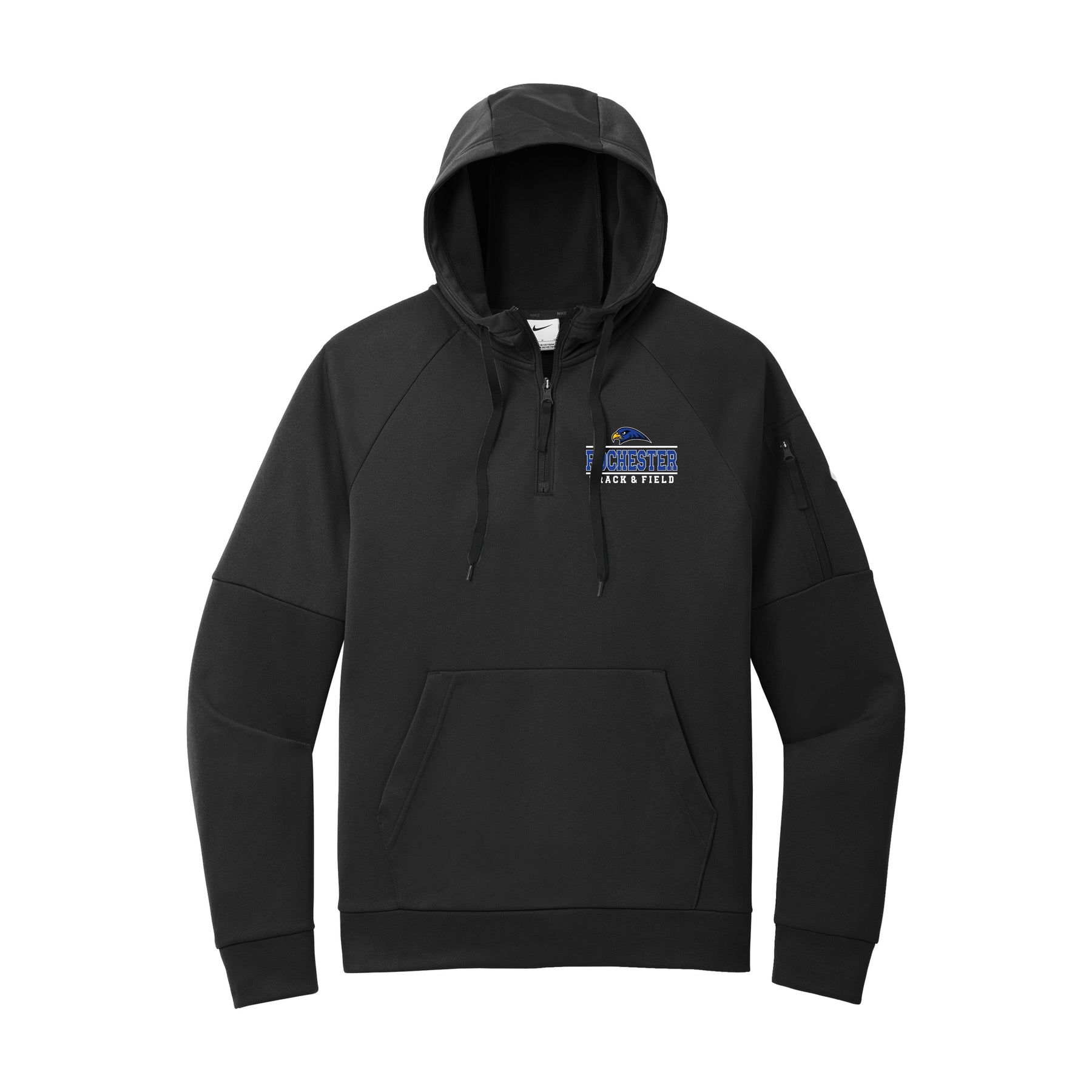 This 1/4-zip hoodie with a zippered left arm pocket brings the heat to your workout with Therma-FIT fabric. Therma-FIT helps manage your body’s natural heat to keep warm in cold-weather conditions. The design includes a three-panel hood with black drawcords, a dyed-to-match zipper and a front pouch pocket. Self-fabric cuffs and hem. A contrast Swoosh logo is embroidered on left sleeve. A contrast Therma-FIT logo is embroidered on back hem. Made of 7.4-ounce polyester Therma-FIT fabric with at least 50% recycled and/or organic content.