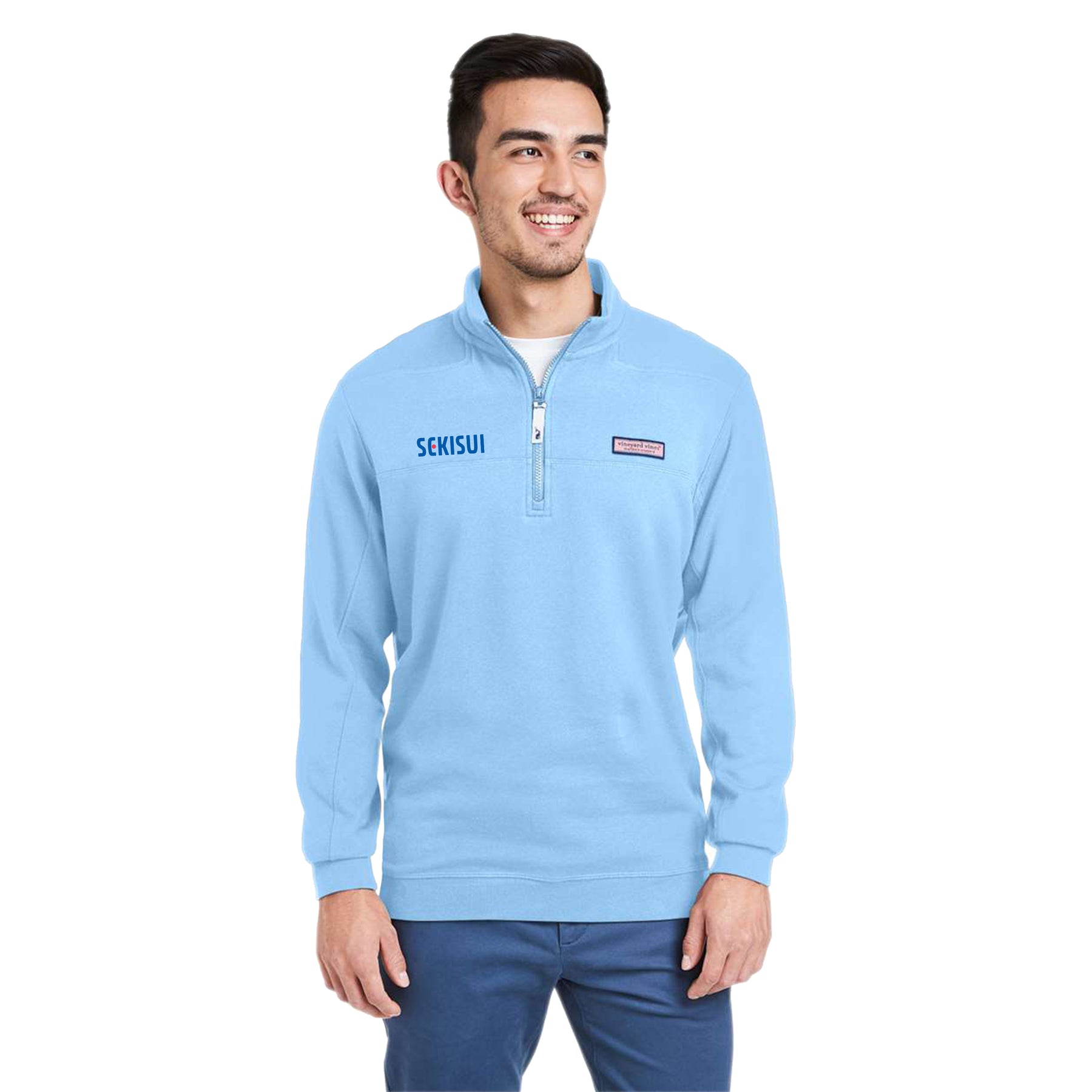 Vineyard Vines logo box label on left-chest and back collar