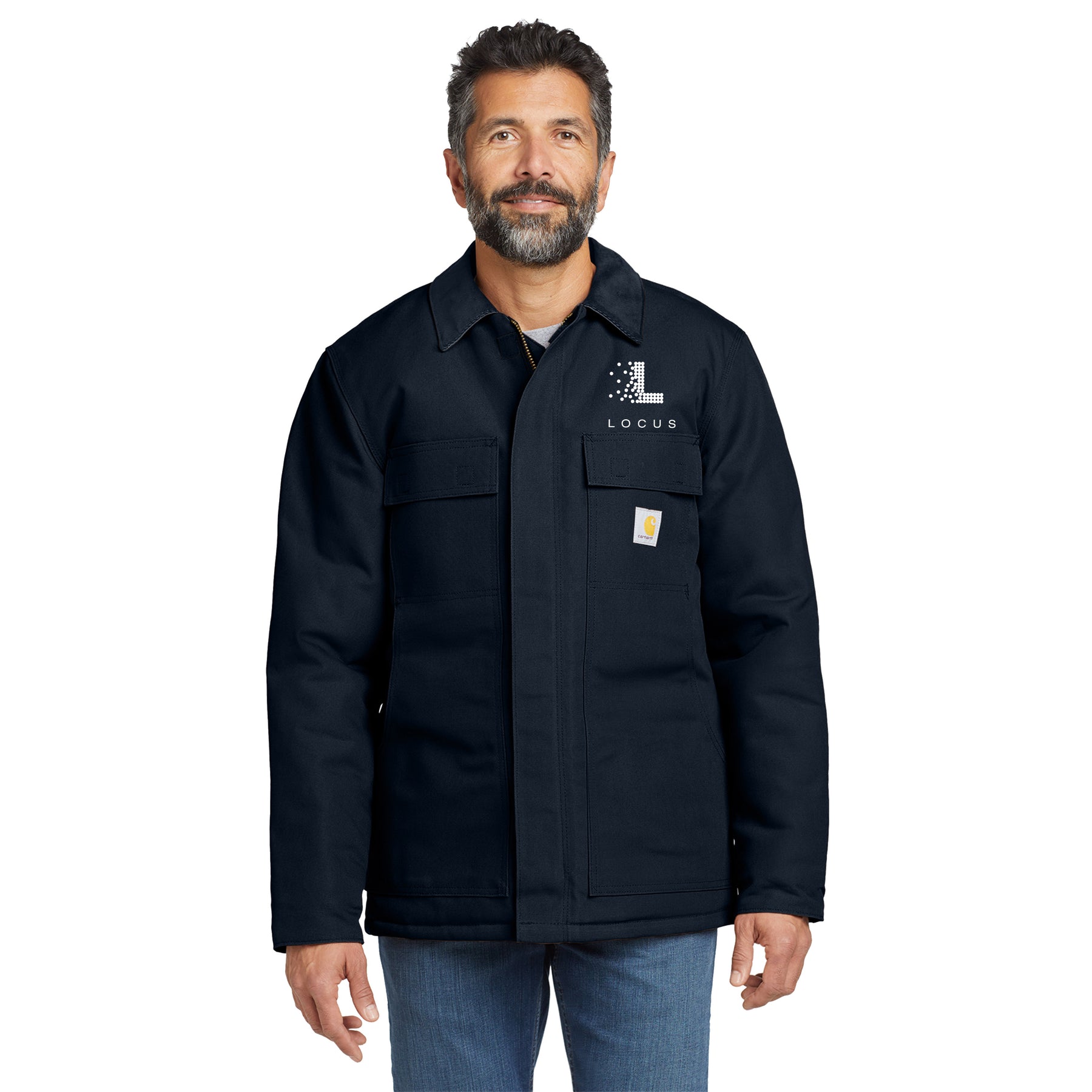 Carhartt label sewn on left chest pocket