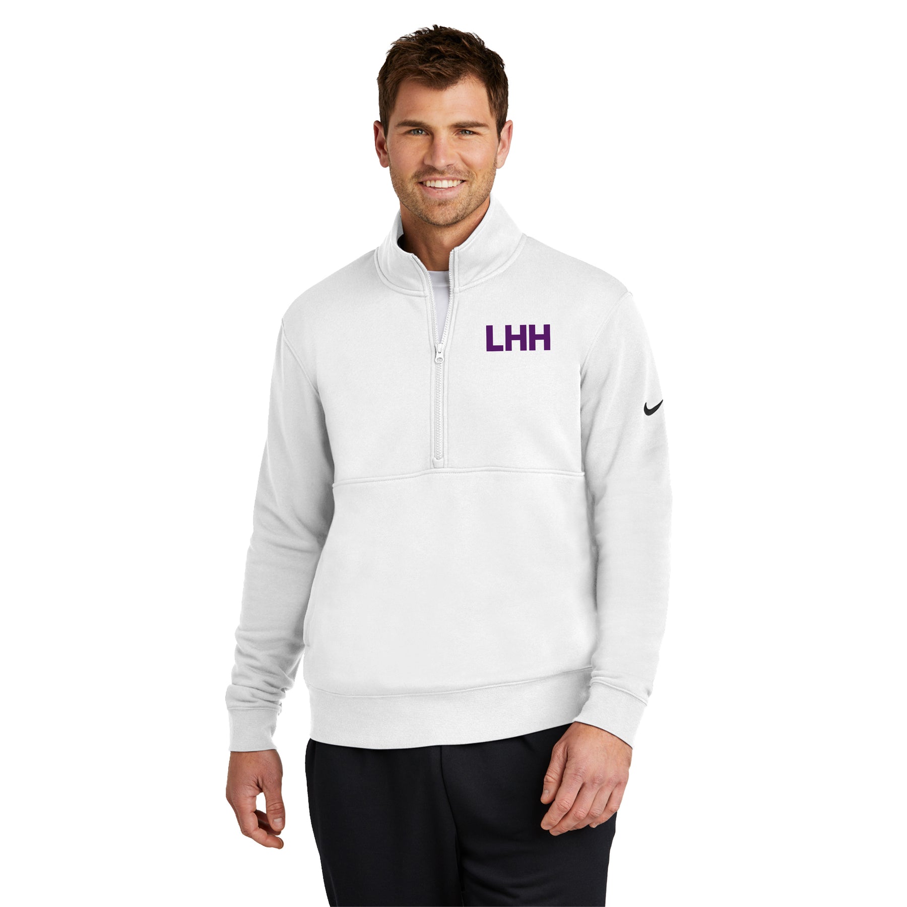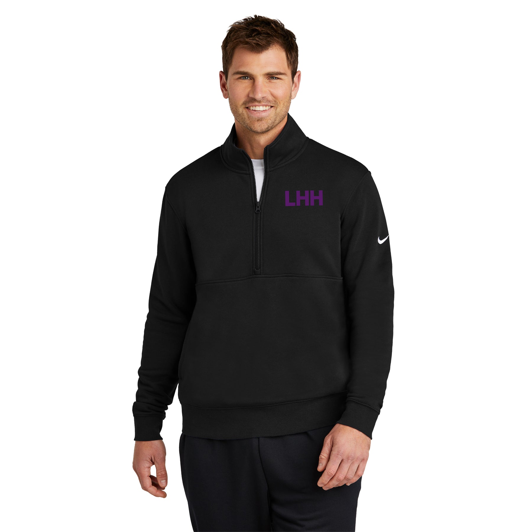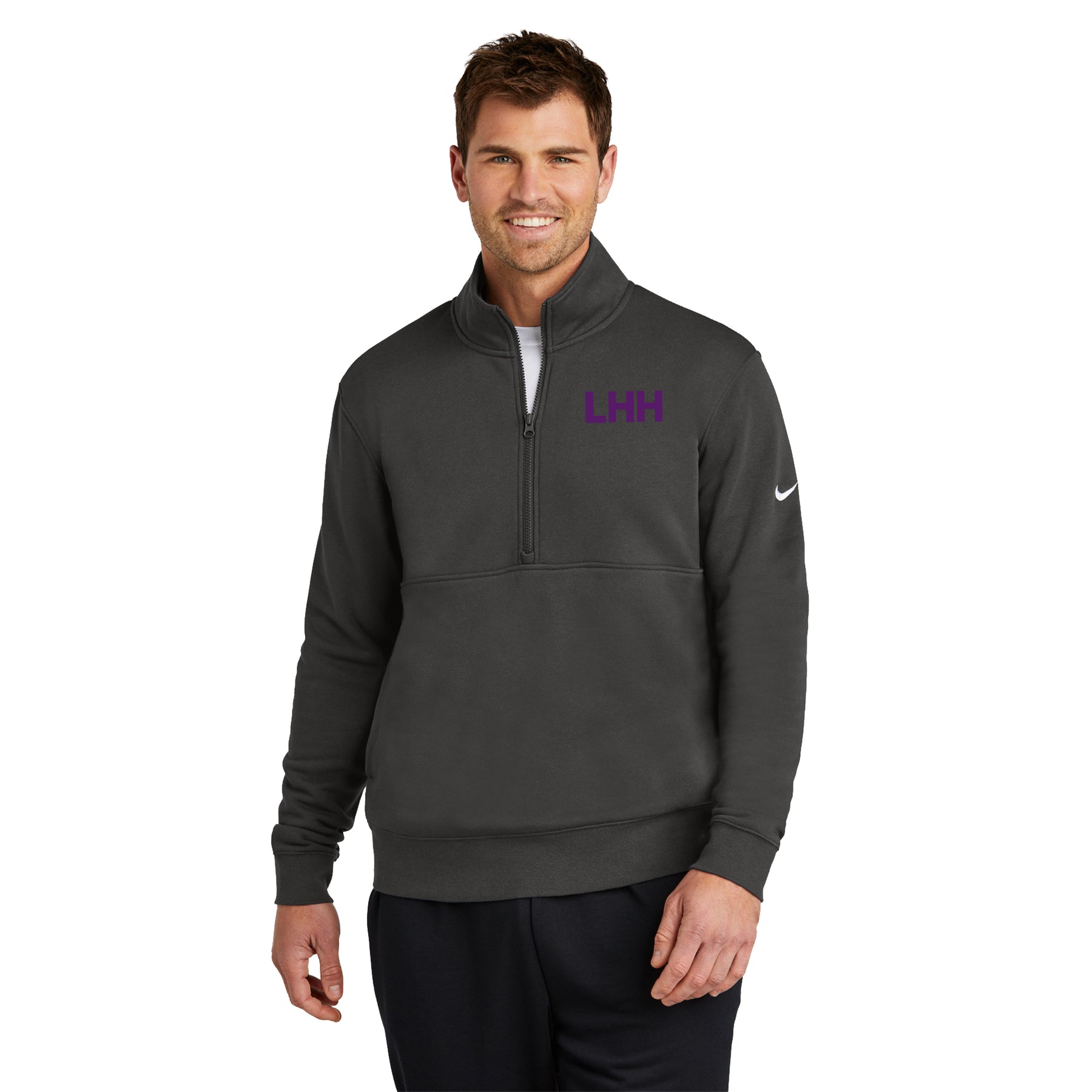 • Built with versatility in mind, this brushed-back 1/2-zip has an elevated look which makes it perfect for work or play. Design details include a zip-through collar with dyed-to-match zipper. Side pockets. Rib knit cuffs and hem. A contrast Swoosh logo is embroidered on left sleeve. Made of 8.3-ounce, 80/20 cotton/polyester.